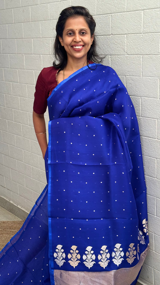 Blue Silver Woven Silk