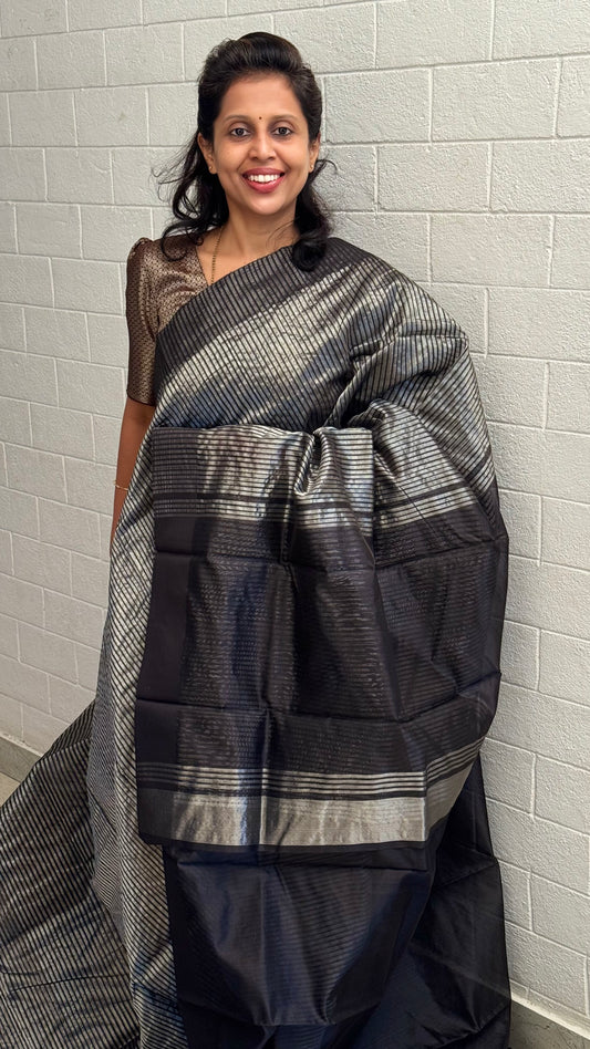 Black Silver Zari Woven Silk