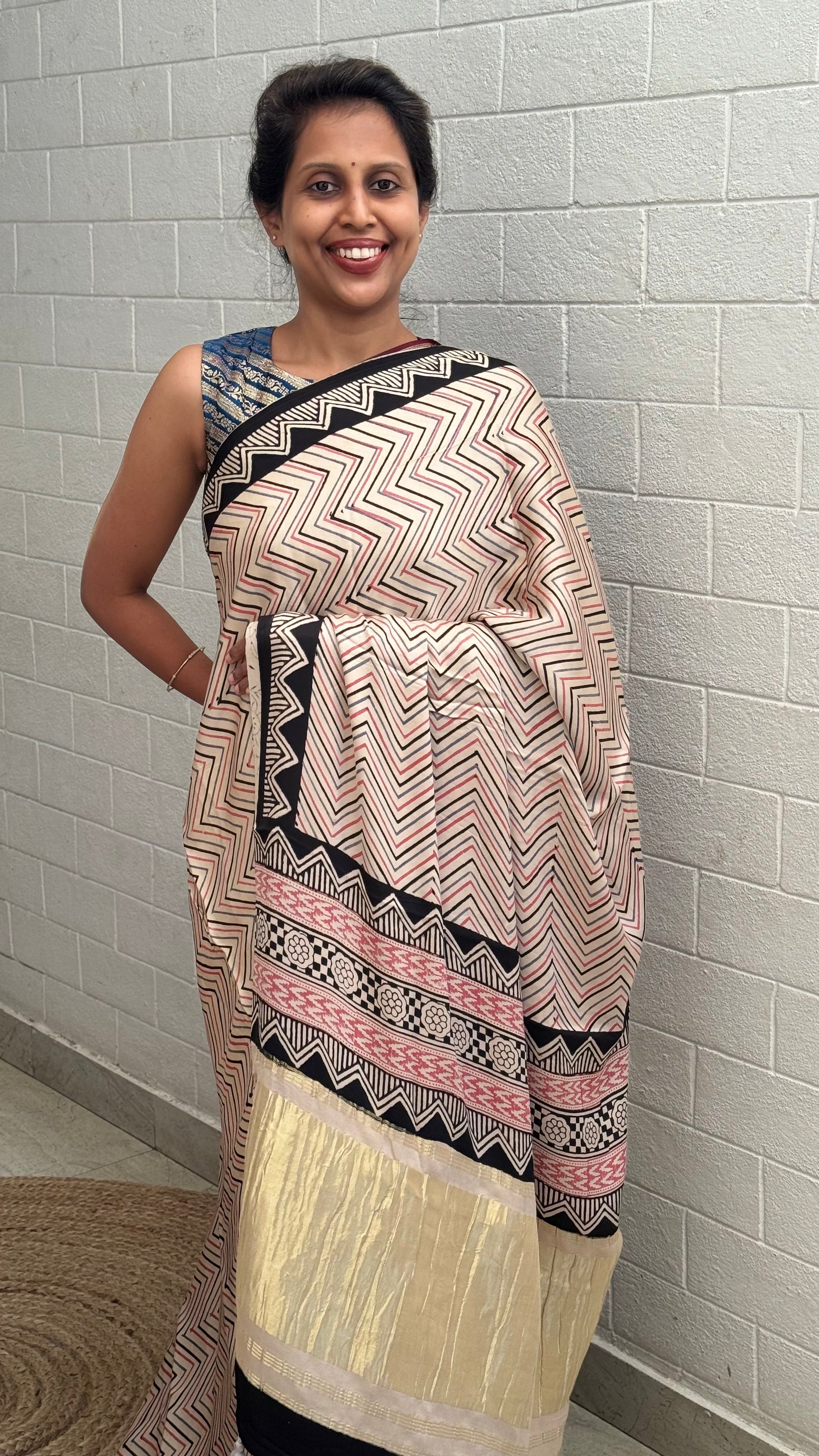 Blouse: Monotone Color Handblock Printed Blouse
